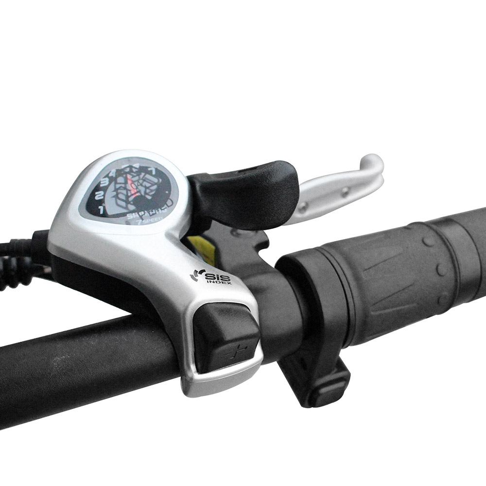 4.Задний переключатель с семью скоростями облегчает преодоление холмов, а поворотные переключатели позволяют плавно и легко переключать передачи во время езды
